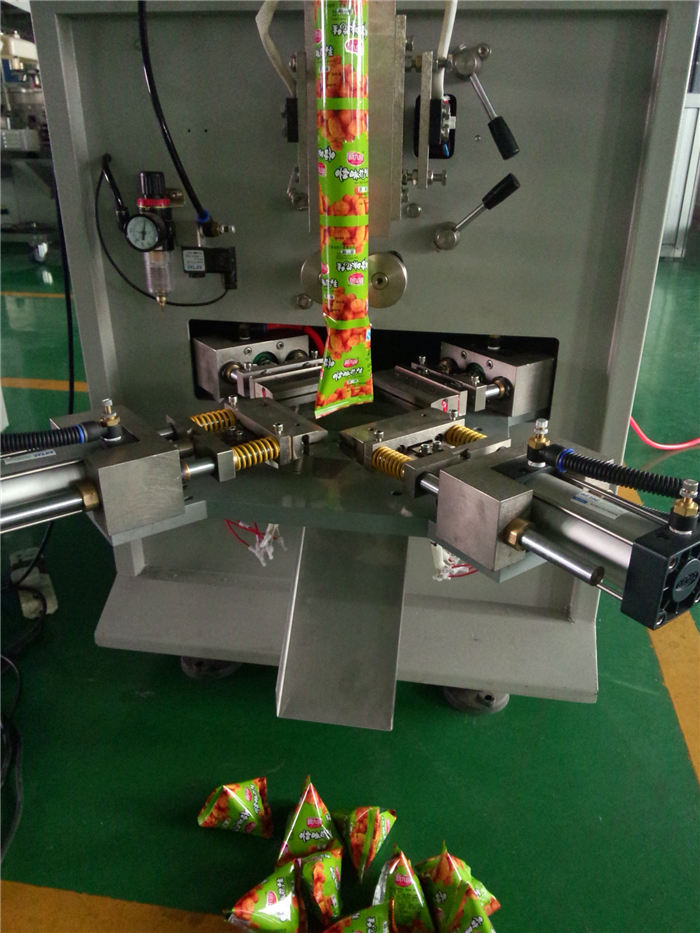 采用光電眼控制系統(tǒng),每包即可準(zhǔn)確分切包裝袋,成品形狀呈三角型,