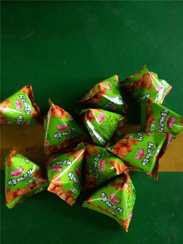 膨化食品、蝦條、花生、爆米花、麥片、瓜子、果凍、白糖、鹽等顆粒狀、短條狀、液體狀食品的三角形包裝。